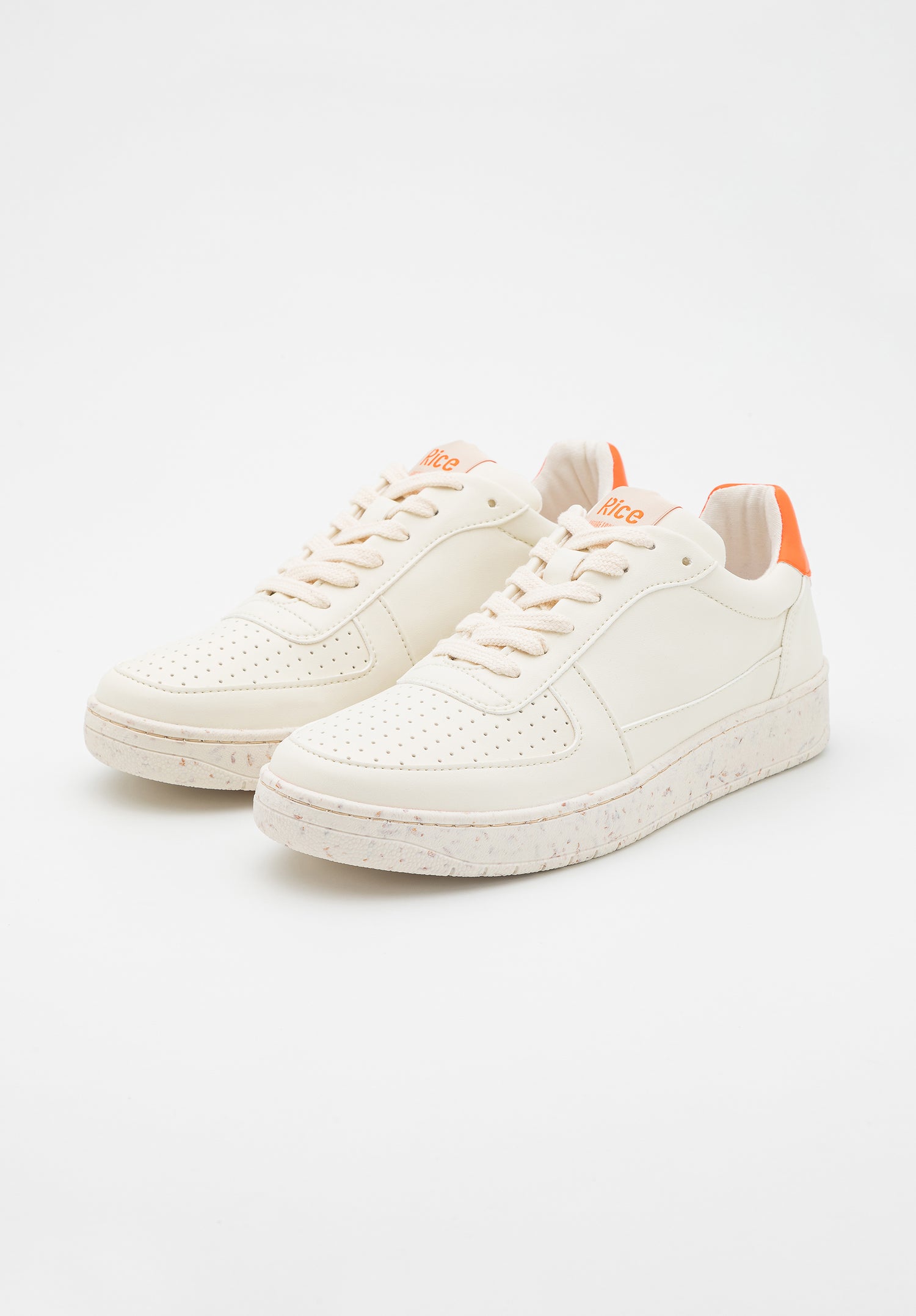 Anpassbarer Stil: Diese Sneaker werden mit zwei Paar Schnürsenkeln geliefert, sodass Sie Ihren einzigartigen Stil zum Ausdruck bringen können. Wählen Sie je nach Stimmung zwischen dem eleganten Ecru oder dem auffälligen Ecru/Orange-Meliert-Muster.